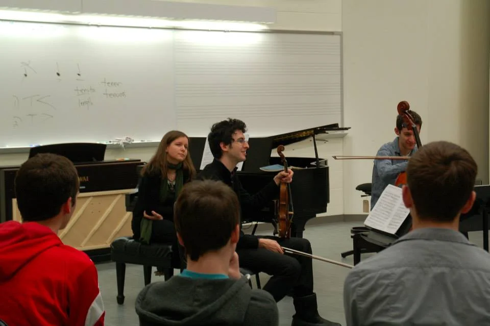 Watch a video of a recent high-school visit in Milford, PA and an interview with the Trio before a Music for Youth concert and browse a gallery of past performances. Feel free to contact us with any questions.